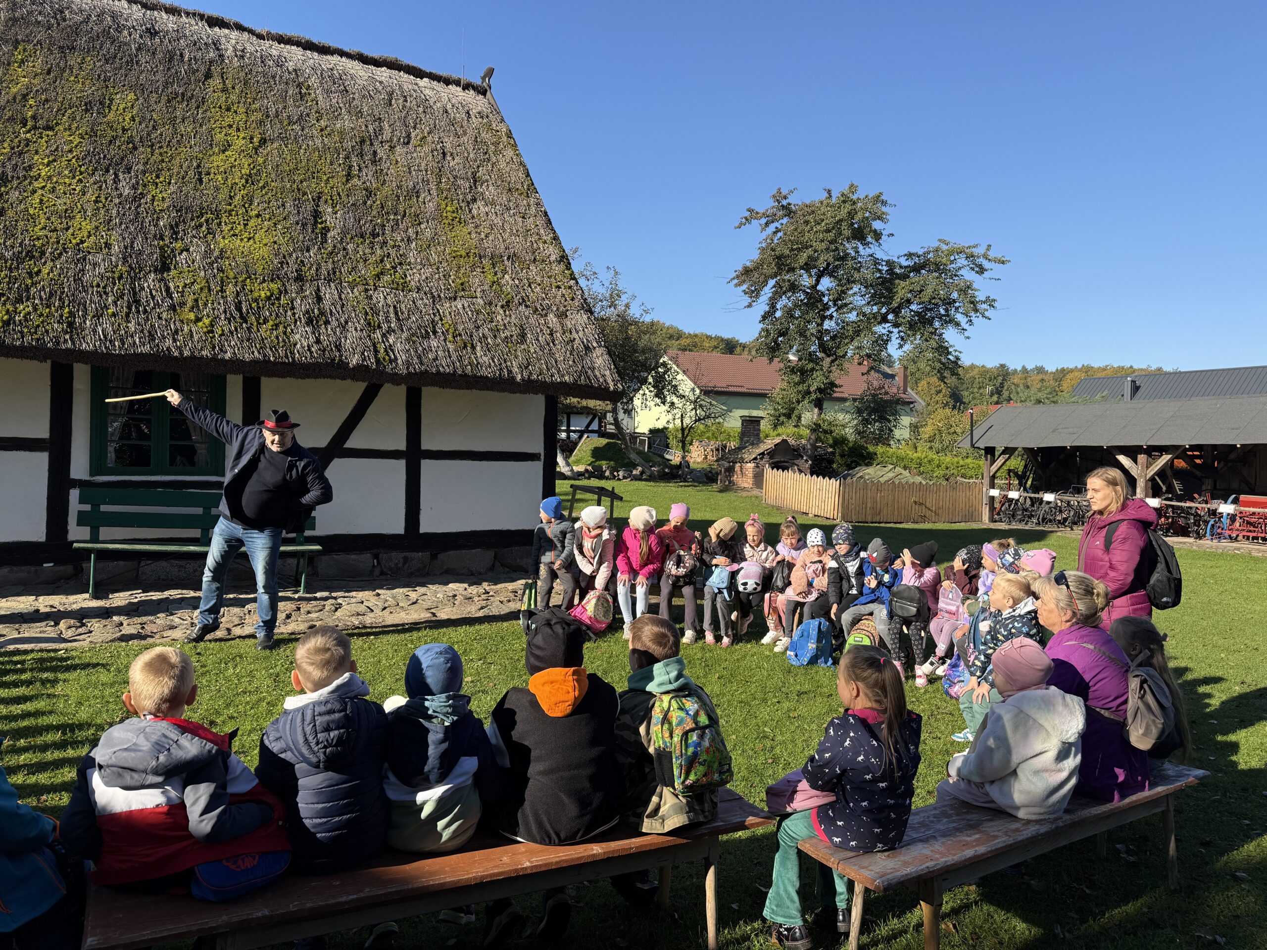 W słoneczny jesienny dzień uczniowie klas 1a i 1b wybrali się na swoją pierwszą wspólną wycieczkę do skansenu w Nadolu – muzeum „Zagroda Gburska i Rybacka”.