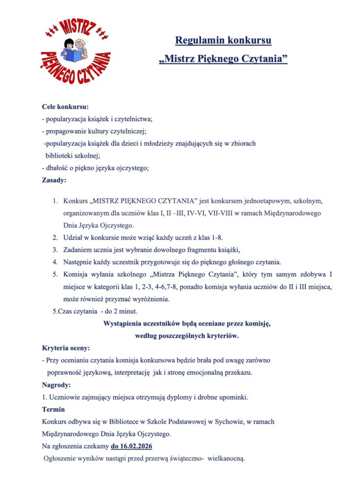 Celem konkursu jest popularyzowanie czytelnictwa wśród dzieci i młodzieży, rozwijanie umiejętności czytania ze zrozumieniem